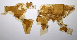 Among many current artists using maps, I particularly liked the work of Susan Stockwell, whose work is very varied and original, including using printed maps to make dresses and other objects, and creating maps from unusual materials such as tea bags, dressmakers patterns, and blank tissue paper. More of her work here and some images here...